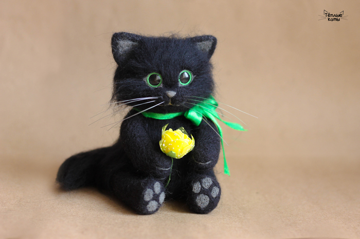 Чёрный котейка. Сухое валяние.
