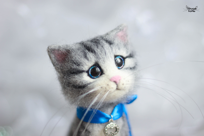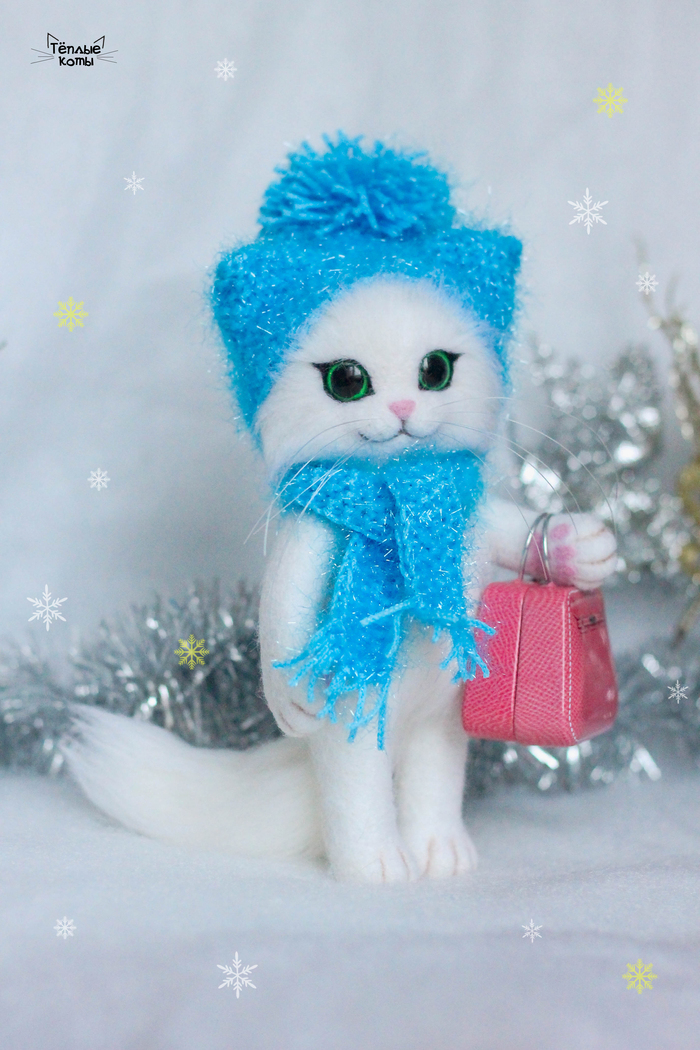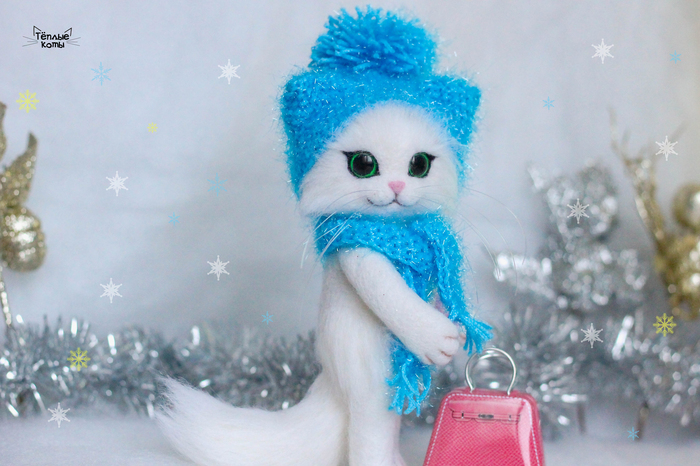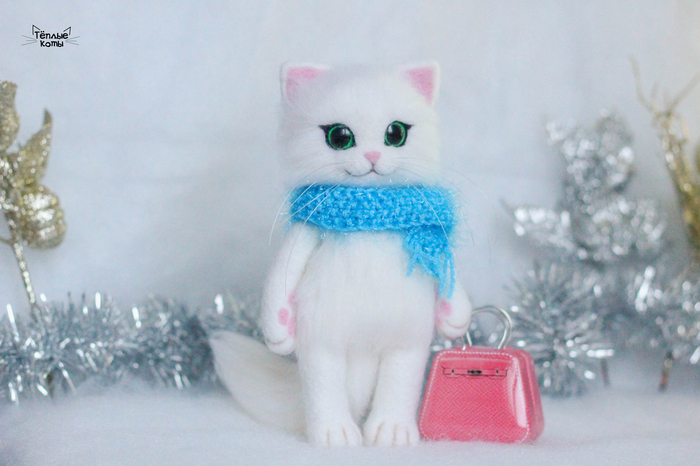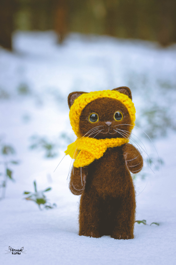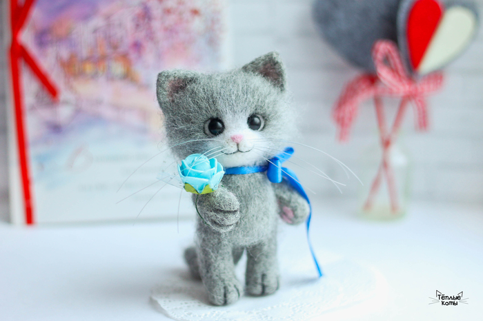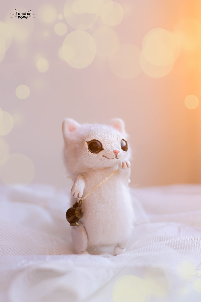 Всем привет! Расскажу немного о процессе. В работе над этой кошечкой было использовано два вида шерсти: кардочёс и гребенная лента. Кардочёс в основе, а гребенная лента сверху, она приваливается отдельными прядями по всей поверхности игрушки, что-то вроде наращивания))) Хоть это и трудоёмко, зато результат этого стоит, получилась красивая длинная и пушистая шёрстка)