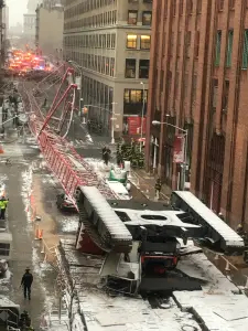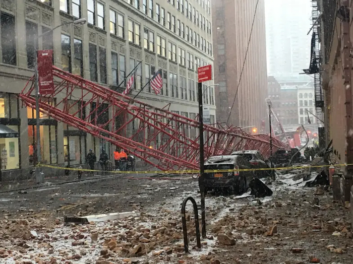 По словам официальных лиц, рабочие пытались закрепить башенный кран посреди короткой, но сильной метели, когда около 8:25 кран рухнул на Уорт-стрит возле Черч-стрит в Трайбеке.