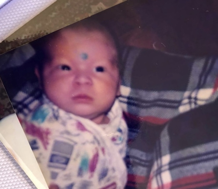 Ну в общем, скачала, загрузила, прога неспешно начала обрабатывать фото...лежу, жду, зеваю...И тут прога выдала, что распознала и обработала на фото два лица. Одно соответственно лицо брата, а вот второе якобы на пеленке в которую укутан брат.