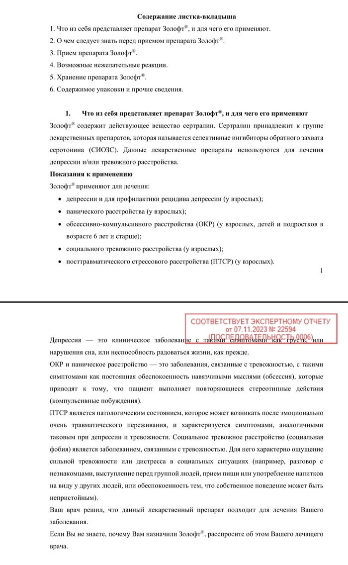 В инструкции особенно обращаем внимание на способ приема (до еды, после еды, во время), рекомендуемые дозы (врач мог ошибиться), противопоказания и возможные побочные эффекты. В побочных эффектах обратите внимание на частоту, чтобы не боятся, что у вас возникнет все и сразу. Обратите внимание на взаимодействия с другими лекарствами и применения в особых случаях, врачи довольно часто это упускают. Вот к примеру инструкция к Золофту (сертралин), все расписано очень подробно и довольно понятно, в том числе и про отмену препарата.