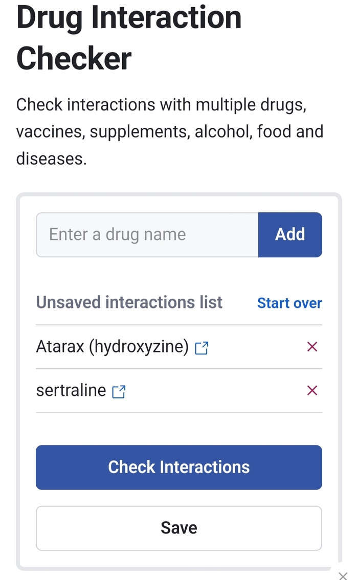 Посмотрим например сертралин и его взаимодействие с Атараксом.