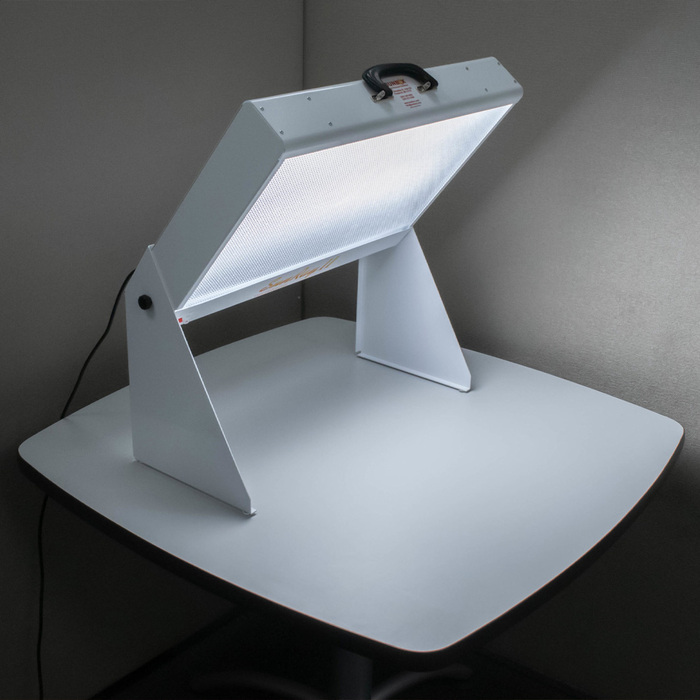 Так выглядит лампа для светотерапии. Если задумаетесь о покупке, обращайте внимание на мощность, 10 000 люкс дают немногие, честно говоря не в курсе какие варианты сейчас в доступе в РФ.