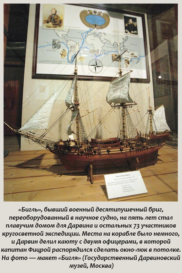 «Над проблемами изменчивости видов Дарвин, по его словам, начал задумываться уже во время плавания на «Бигле»: «Я пришел к мысли, что виды, вероятно, изменяются, из данных по географическому распределению и т. п., но в течение нескольких лет я бессильно останавливался перед совершенной неспособностью предложить механизм, с помощью которого каждая часть каждого из созданий оказывалась приспособленной к условиям их жизни». Идея Ламарка о постепенном совершенствовании видов стала к этому времени достаточно популярной. Подобно тому, как капля долбит камень, повторявшиеся десятилетиями утверждения о естественном развитии, появлении новых видов делали свое дело и приучали людей к мысли о допустимости эволюции. Уместно вспомнить и Бенджамена Франклина с его тезисом о человеке, превратившемся в такового из животного благодаря производству орудий труда, и знаменитого деда Чарлза, Эразма Дарвина — врача и публициста, изложившего в своем сочинении «Зоономия, или Законы органической жизни» (1795 г.) идею органического прогресса.»