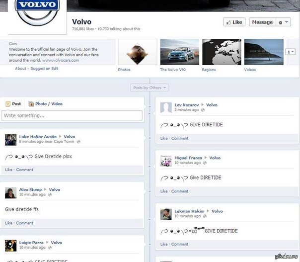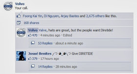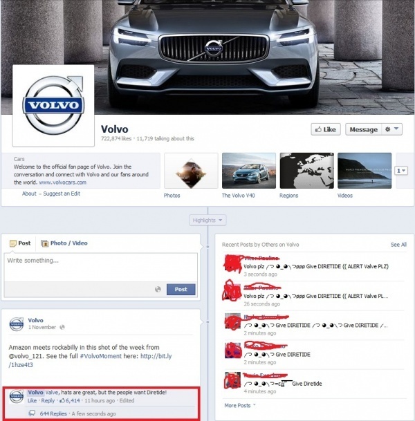 Когда то давно, компания Valve выпустила ивент Diretide в своей игре Dota 2. Когда на следующей год ивент решили пропустить, в сообществе игры начался спам во все аккаунты Valve во все соцсети, где присутствовала компания. А поскольку в комьюнити Valve называют ещё и "Volvo", то досталось и той самой Volvo.