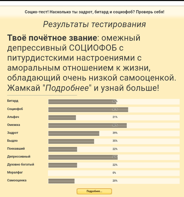Попался мне на просторах интернета один тест, думал, очередная хрень, но оказался довольно точным...