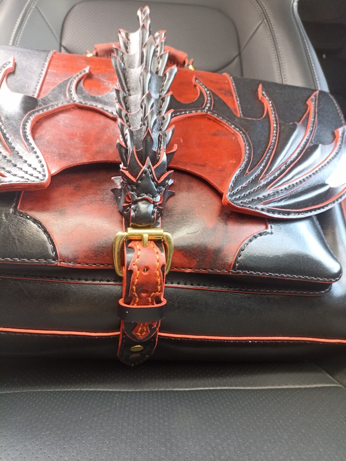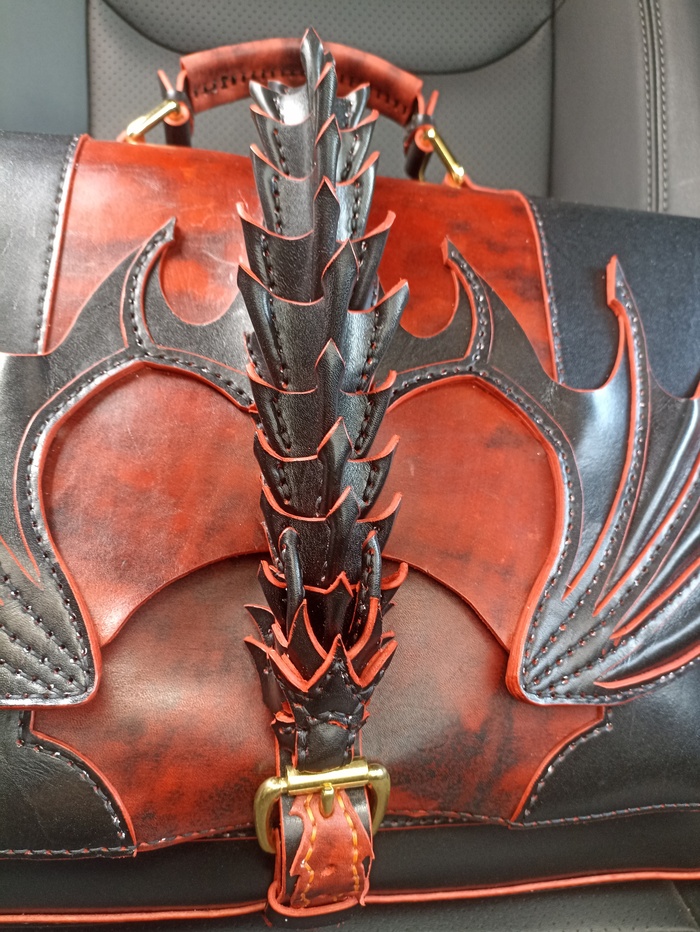 По материалам. Кожа - белорусская юфть. 2-2.2мм. Двухцветная для тела, красная для вставок. Всего ушло около 120дм.кв. Нить Galaces, чёрная, 0.8мм. Апертура Spanish. Урезы обработаны токонолем, хотя перехожу с него на софтфил. Фурнитура латунь.