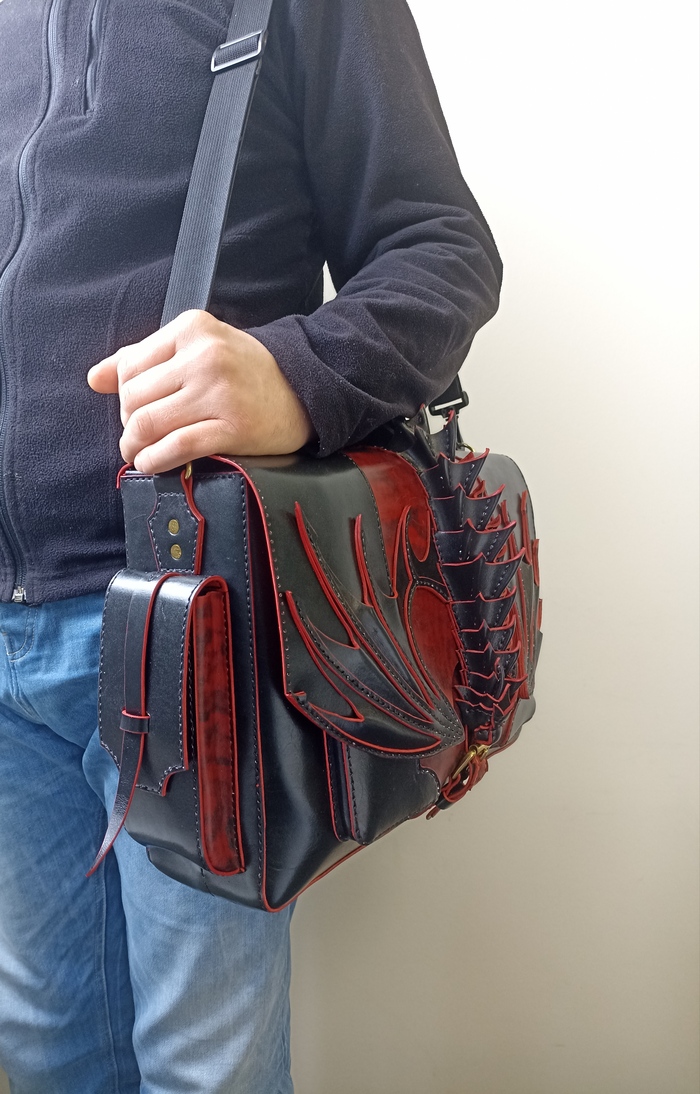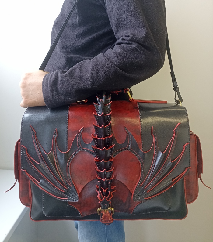 Новая сумочка, предназначенная для ношения на поясе, на ремне. Глубокий зеленый цвет тела сумочки напоминает о близком лете, а красный дракончик защищает ее содержимое совместно с кольцевым магнитом.