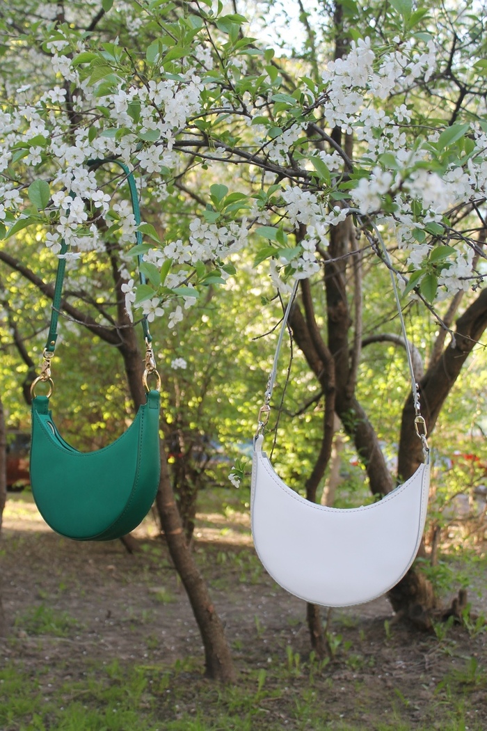 Данные два экземпляра сделаны для моих любимых жены (зеленая) и дочки (белая). Простые и в то же время очень изящные сумочки-"багеты" можно использовать как для повседневного ношения, так и "на выход".