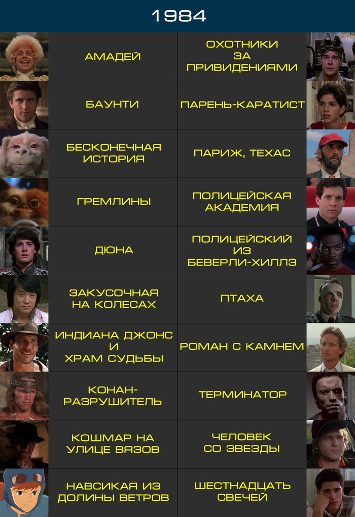 Подборка фильмов 80-х по году выхода