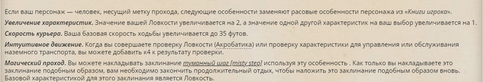 Допустим у нас есть персонаж, Человек с Меткой прохода из ДнД 5 редакции