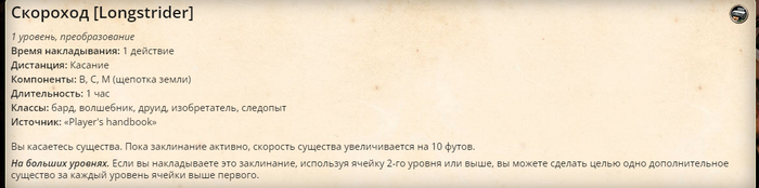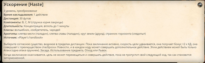 Так же, заранее, он накладывает на себя действием заклинание третьего уровня "Ускорение" - которое длится минуту и требует концентрации.