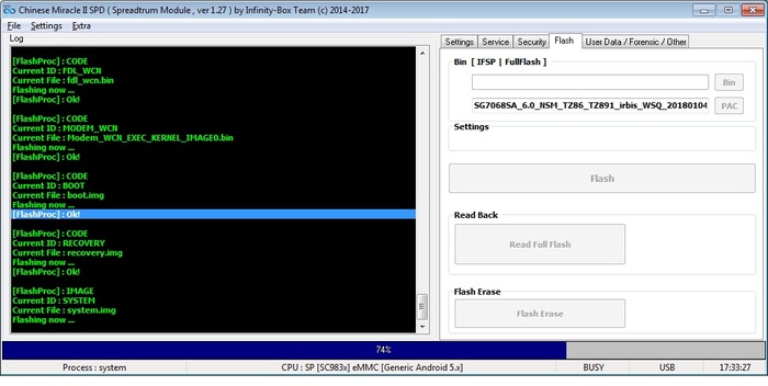 Прошиваем и получаем дефолтный имей, который поправим на родной теми же коробками на оригинальный.