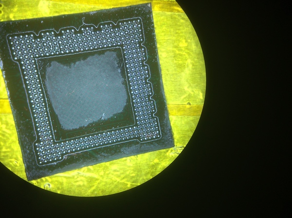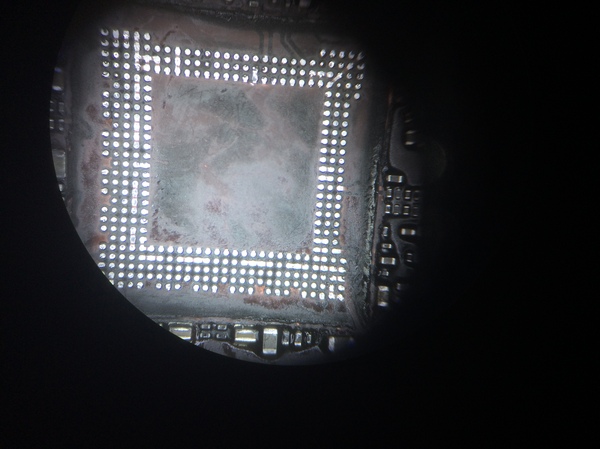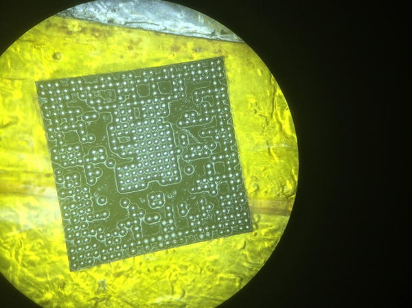 снимаем микросхему, никаких опасностей в виде компаунда поблизости нет, поэтому все делается достаточно просто.