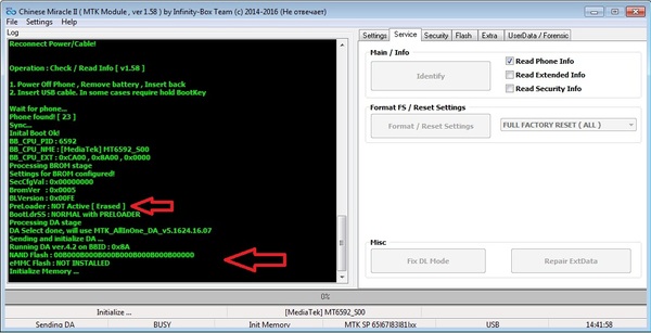 Как я говорил ранее, флешки программно на разных платформах и от разных производителей телефонов меняются абсолютно по-разному. В данном случае, допустим, без нужных разделов считанных с родной флешки, которая устанавливалась на заводе, не возможно было бы восстановить имей, а соответственно и телефон оказался бы дорогим плеером максимум.