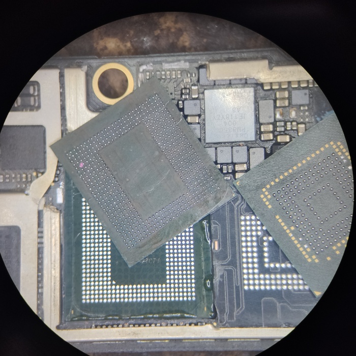 И все, кто мало-мальски занимается компонентным ремонтом, это знают. Поэтому все катальщики, которые не понимают ничего в диагностике телефонов, умеют делать такие ремонты. Ведь тут важны чисто ремесленнические скиллы, которые за годик доводятся до идеала. Но многие мастера на этом и останавливаются, думая, что реболлить двухэтажные процы – это и есть пик профессионализма в этой сфере и гордятся тем, что они уже умеют больше, чем иностранные специалисты с юноны и апрашки, которые на потоке меняют дисплеи и акб. К сожалению, после таких катал, приходит куча укатанных (такая вот тавтология) в хлам телефонов, большинство из которых можно было восстановить, сделав правильную диагностику. Как это происходит у них: сначала снимают проц с оперативкой, реболлят их, ставят обратно, телефон не заводится; точно, есть же еще флешка, снимем-ка ее; ой все равно аппарат компом не видится, надо еще зареболлить проц, вдруг недосел или шары слиплись. Все равно не видится. -алло клиент, у вас тут сложный случай, нужно донорскую плату покупать полностью рабочую за 10к, чтобы сделать свап на живую доску. Сделали свап, опять че-то не включается. Конечно, сначала была одна проблема, а в процессе таких прожарок процессор или ufs-память уже померли, в утиль.