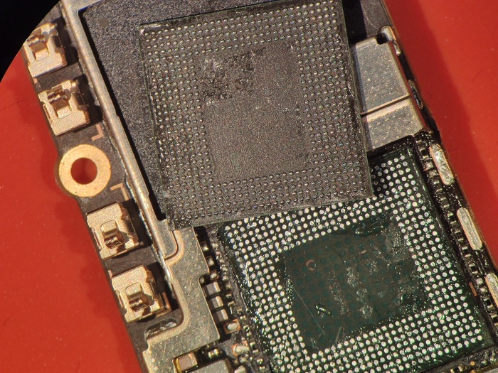 Тут удача меня покинула и контроллер, который, находится рядом с процессором, пришлось тоже реболлить.