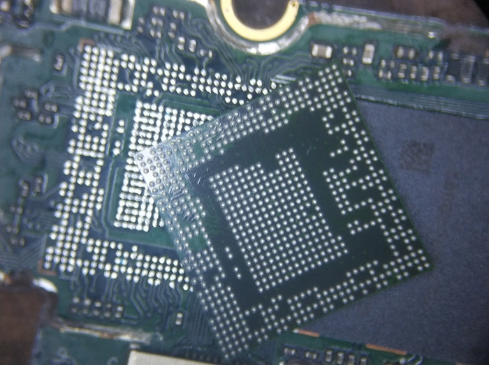 Ну конечно же теплится надежда, что вот сейчас мы его прошьем и телефон увидит служебные данные, которые хранятся в модеме. Но нет, после прошивки то же самое. Чтобы уж совсем наверняка успокоить себя: снимаем контроллер, потыкаем мультиметром, убедимся, что по парочке шин заниженное сопротивление, которое говорит нам о том, что по ним “пробит” модем.
