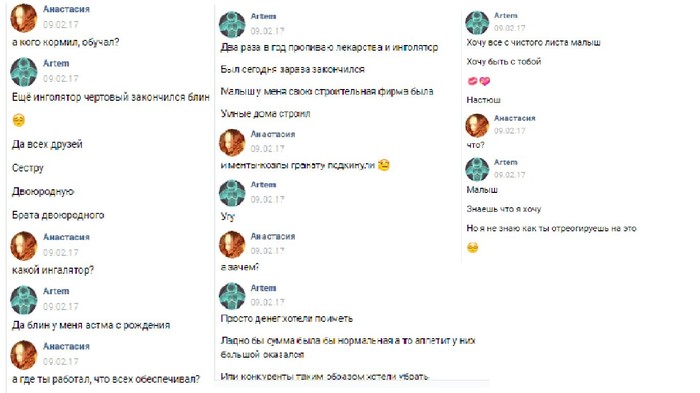"На днях мне пришло сообщение от одной из участниц данного сообщества, в котором она сообщила о настырном ЗК, который упорно настрачивает ей в личку. Таких кабась десятки, казалось бы, ничего примечательного, но мой взор пал на статью 222, по которой его осудили. Признаюсь, впервые сталкиваюсь с данным экземпляром. Мгновенно было принято решение: запрягать зеленого коня и скакать за подробностями. В моей голове уже зарождалось начало повествования фееричной истории, которая сможет меня удивить. Но, увы и ах! Прошарив мой профиль, пердучелло не спешил развязывать свой язык, что, в принципе, было предсказуемо. В крокатульих кругах моя персона известна многим, поэтому я надеялась только на его зечью тупость и жажду халявы, в чем он полностью подтвердил правильность выбранного курса. Около часа я расписывала себя с самых лучших сторон, дрогнуло сердце арестанта (а может и не оно, я прямым текстом напрашивалась на КС, обещав привезти вкусняшек), и открыл он мне тайну вселенскую – сидит по 159 ст. Представляете мое разочарование, когда ожидав офигительную стори о 222, я получаю банальную 159 (друг подставил бизнесмена)?! Так как ПочтиЛюбимка является одним из активных персонажей одной из Подслушки ( а также участником конкурса «какой-то мистер») и очень любит внимание дам, я поделилась своим счастьем с несколькими приятельницами. На скринах, котятки, вы можете наблюдать как несправедлива судьба к честному арестанту, через какие только несчастья ему пришлось пройти. Все переписки проходили в один и тот же день. Но на этом история не заканчивается, так как есть много интересных моментов и признаний в любви. Одной он даже успел сделать предложение руки и сердца, а также давил на жалость жизненными трудностями."(с)