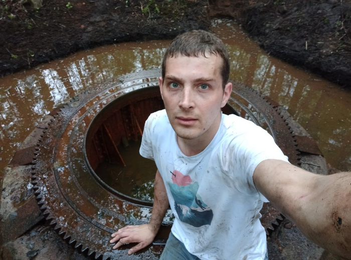 Это я благоустраивал в мае в болоте затерянную морскую батарею времён обороны Ленинграда. Откопал из жижи, по координатам из военного архива. За мной бетонная тумба на которую ставилась 84 тонная 180-мм. артустановка "МО-1-180", стрелявшая 100 кг. снарядами на 38 км. И шаровый погон, на который она опиралась. Сейчас там красиво, стало, табличку поставил, законсервировал бетон.