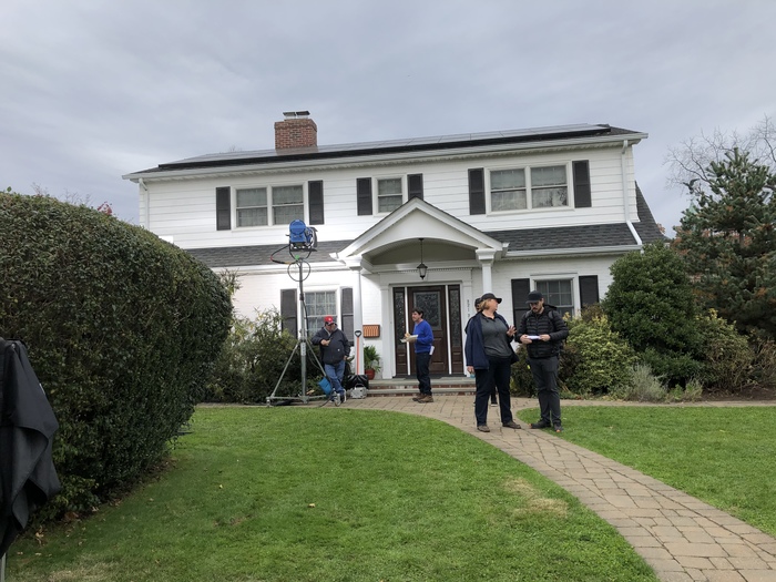 Снимали в этот день в частном доме, я думала о, ну наверное это частный дом специально для съёмок и подобных мероприятий, но оказалось что это обычный частный дом со старым интерьером что подходило по задумке режиссера под персонаж. Не уверена как именно они находят такие дома для съёмок, это я не уточняла. В доме в этом живет семья с детьми и повсюду были их вещи. Расчистили от личных вещей только три комнаты на первом этаже: небольшая гостиная в котром собственно снимали сцену, столовую где съемочная группа кушала и ещё одну комнату из которой вынесли всю мебель, заклеили все окна и поставили там кучу мониторов, стулья и там собственно на экране сьемочная группа и наблюдала за съемками. В гостиной где снимали сцену должны были находиться только две актрисы, три оператора и два парня которые держали микрофоны. Остальная часть съёмочной группы наблюдала за процессом глядя в мониторы в сосоедней комнате, то есть они сразу смотрели на картинку как если бы они смотрели сериал по телеку, только с нескольких ракурсов.