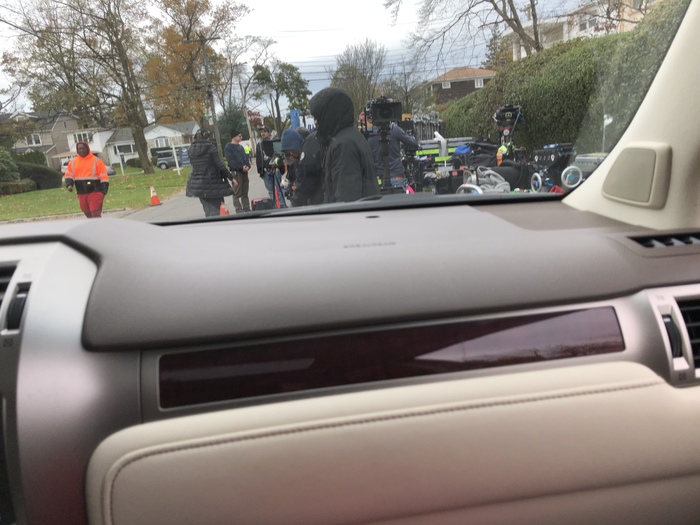 Приехали мы туда где то в 7.45, и поняли почему в подобных случая преподчитвют снимать в полной жопе мира. Дом был на углу и перекрыты были все 4 улицы которые отходили от него, стояла куча траков с оборудованием, гримерными и тд. Часть траков была уже там, часть подъехала уже после нас, глядя на кучу персонала на улице, плюс вспомогательных работников - типа регулировщиков движения котрые заворачивали машины, понимаешь на что тратится бюджеты фильмов и сериалов.