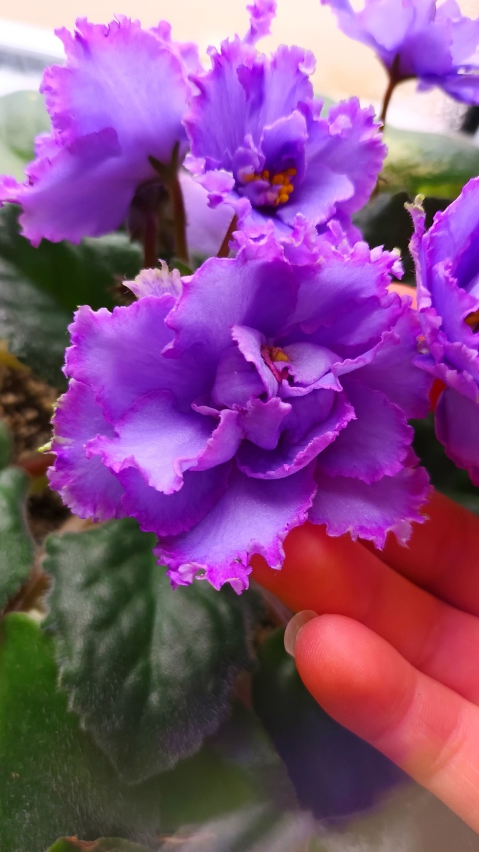 У фиалочки этого сорта очень крупные махровые цветочки небесно-голубого цвета, фиолетовый малиновым оттенком край лепесточков и зеленая каёмочка, проявляющаяся наиболее ярко в прохладных условиях!