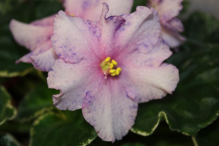 Размер розетки стандартный и колеблется в диапазоне от 20 до 40 см. Но при должном уходе ее диаметр может достигать 45-55 см. Листья относятся к окаймляющему пестролистному виду. Их цвет темно-зеленый с белым краем. Поверхность покрыта мелкими, едва заметными ворсинками. Именно благодаря такой расцветке розетки даже после окончания цветения можно долгое время наблюдать за красивым кустиком сенполии.