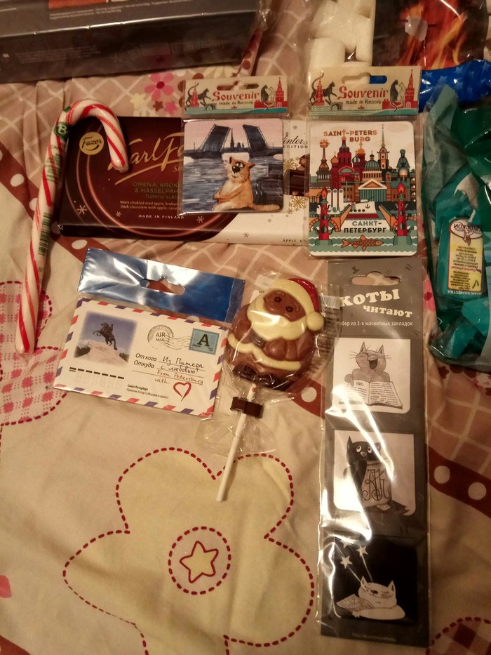 Итак, настала моя очередь выкладывать отчёт о подарках. Спешу предупредить о большом количестве котиков!