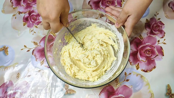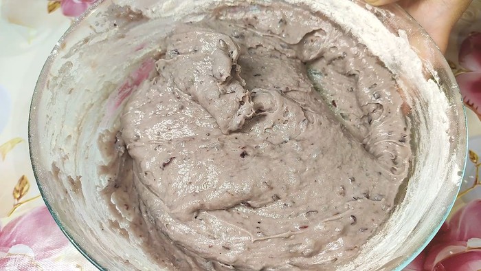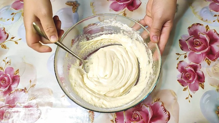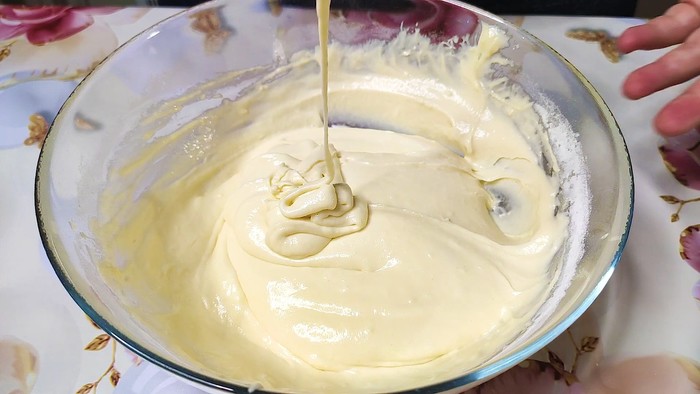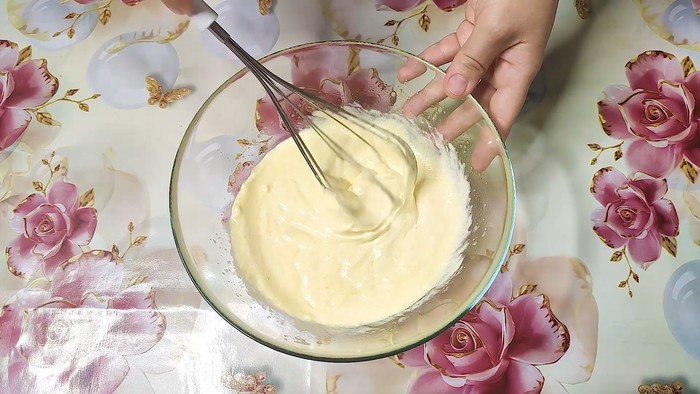 Всыпаем муку, разрыхлитель, перемешать до однородной массы.