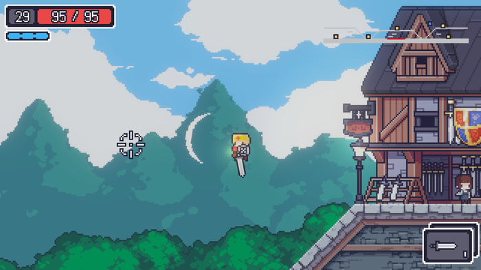 Само оружие, как холодное, так и огнестрельное здесь крайне разнообразное. Здесь есть и скорострельные арбалеты, и рогатки, даже всеми любимая катана. Каждое имеет свою скорость атаки, количество наносимого урона, а так же различные пассивки в некоторых случаях. Не знаю, как вам, но мне как правило выпадали простые палки, наносящие урона ненамного больше дефолтного меча и невесть какой огнестрел. Всё это разнообразие нивелируется простотой геймплея, что даёт время подумать, стоит ли залипать в игру.