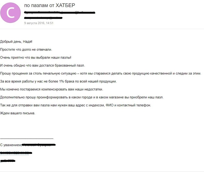 Слова благодарности я конечно отправила, с намеком на то, что ждала всего лишь недостающие 2 кусочка. Жаль что теперь их только выкидывать.