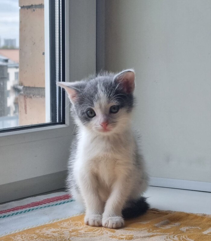 Мне захотелось завести кошечку. Пусть беспородную, но чтоб в добрые руки. Котят женского полу в объявлениях небыло. Но нашёлся котёнок-пацан, которого отдавала девушка-волонтёр. Обычный беспородный котёнок. Его рано забрали от мамки и отдали мне. Вобщем я думала что он кони двинет, потому как не сразу поняла что он не умеет кушать. Выкармливала из бутылочки, купила лоточек, миски, когтедрочку.