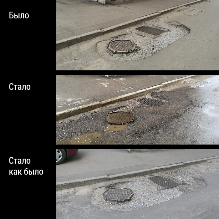 Примерно год назад я выложил результаты моей борьбы с ямами во дворе посредством написания заявлений: ямы закидали асфальтом.