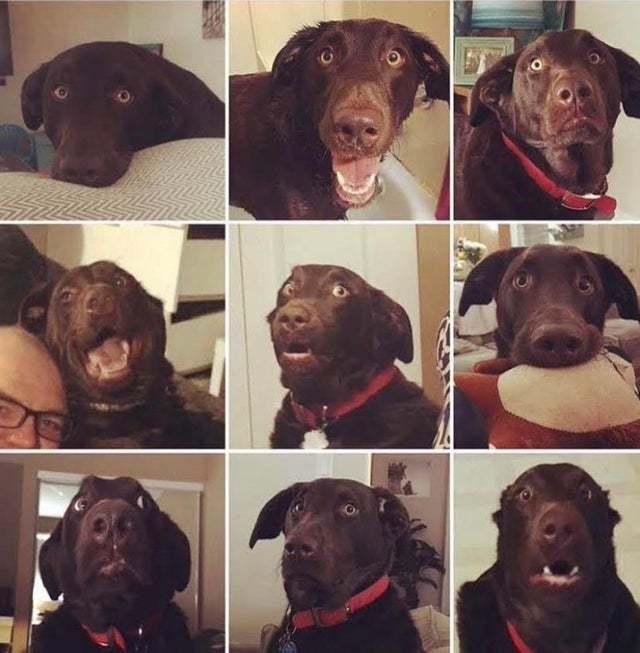 Это Фарли. Его взяли щенком из приюта. Хозяин Фарли поделился небольшим набором выражений морды Фарли.
