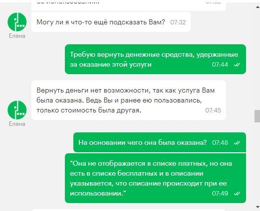 Предыстория такая, что услуга "Удержание вызова" была отключена, но произошло списание за ее использование. Действия, которые инициировали списание были не умышленными, а совершенно случайными, и оказание этой услуги не должно было произойти.