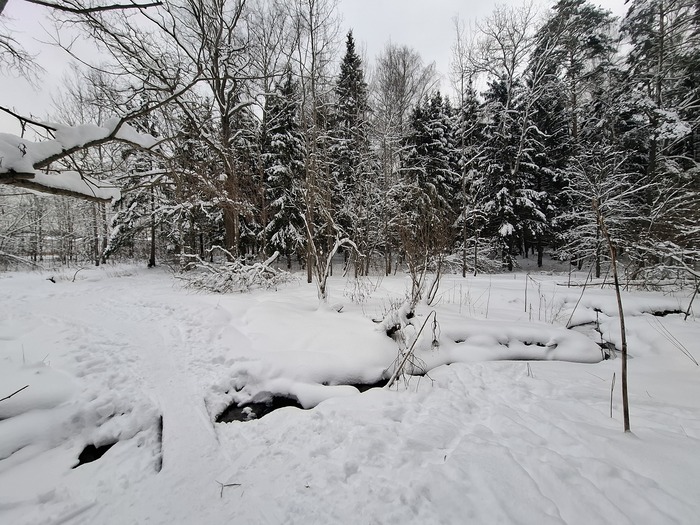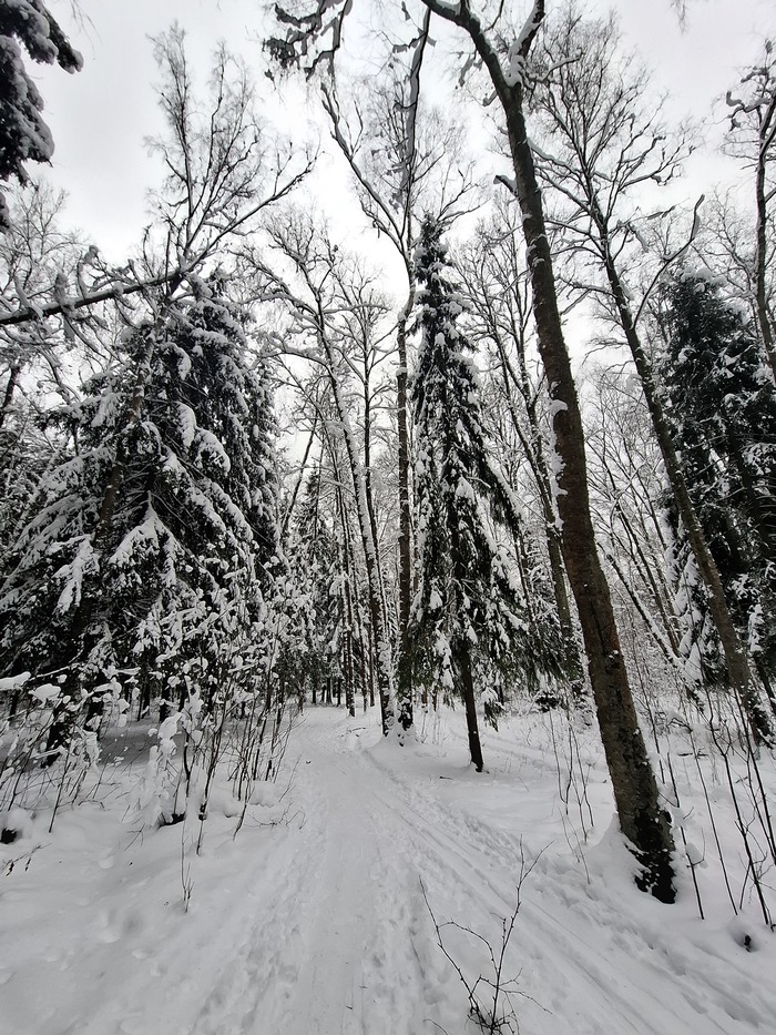 Оказалось, что кондиции снега очень даже хороши, а люди успели натоптать тропинок. На лыжных трассах колеса не копают и не проваливаются, я стараюсь не портить покрытие, а в классическую лыжню не лезу никогда