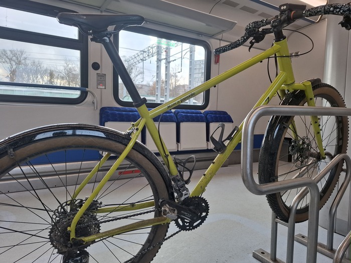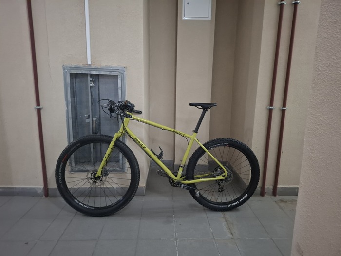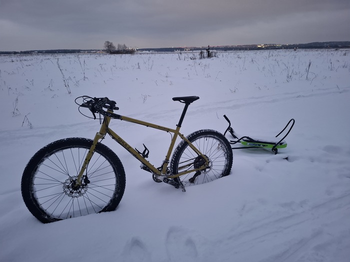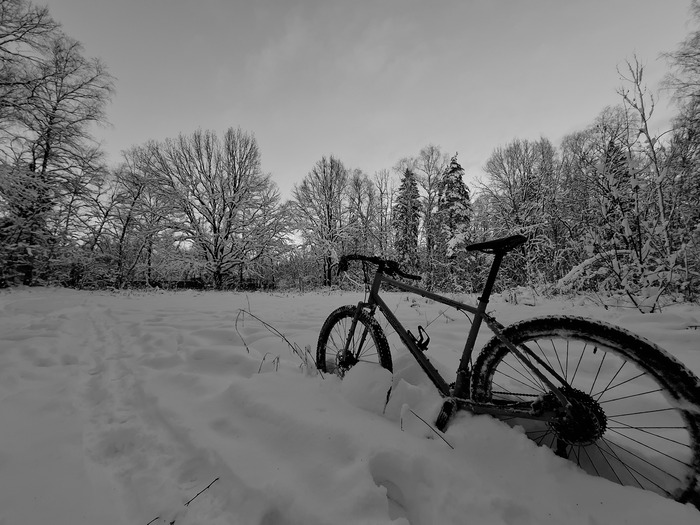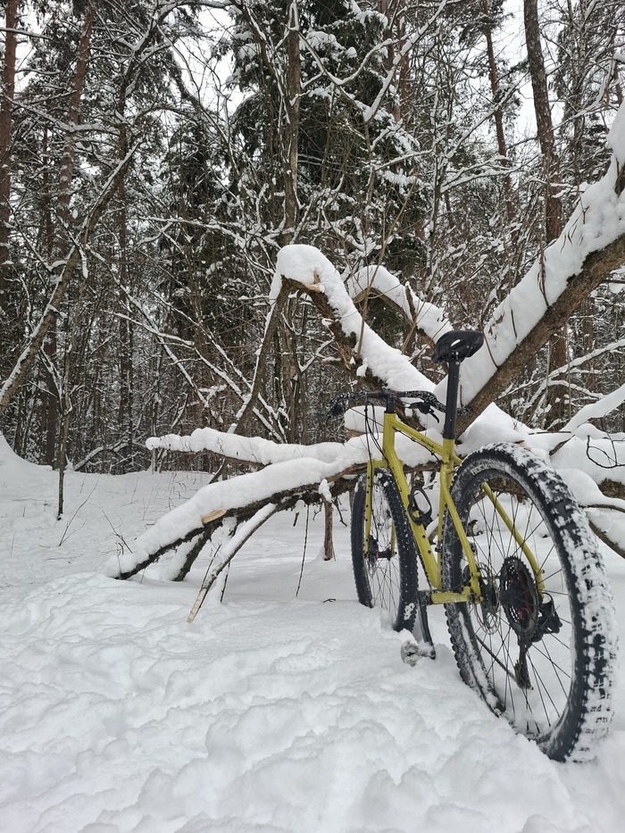 Нынешние новогодние порадовали умеренным снегом и умеренным холодом. На каникулы я специально снял полноразмерные крылья с мамкиного любимца и поставил колеса пожирней: зад 27.5 х 2.8 потому что на 29 х 3.0 (реально 2.6) колесе было яйцо и протектор чуток цеплял выступающую часть переднего переклюка.