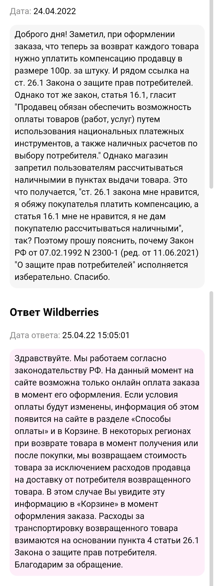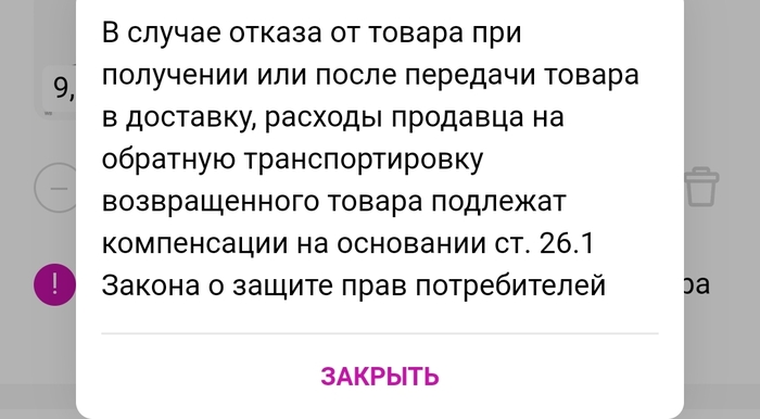 И вот на днях понадобилась мелочевка для дома, которую больше нигде не нашёл, захожу на wildberries и вижу что за товар который ты не хочешь забирать из пункта выдачи нужно оплатить "компетенцию" магазину, и ссылка на закон о ЗПП.