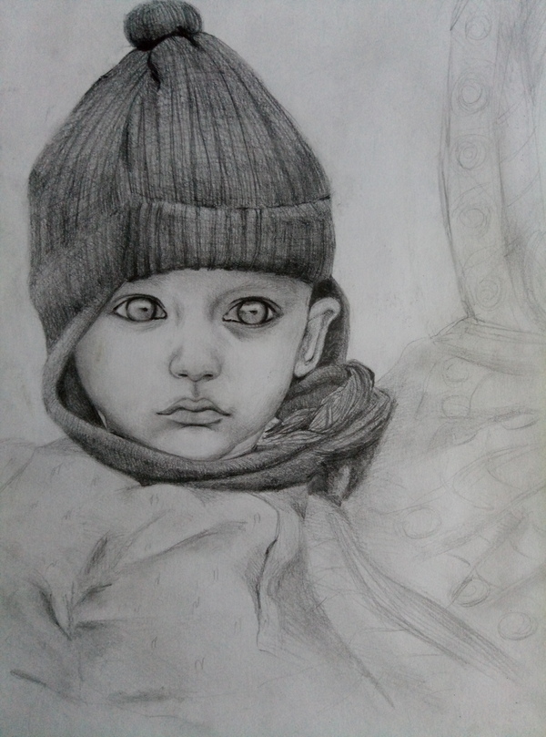 Когда-то давно, то-ли здесь на пикабу, то-ли на другом ресурсе, увидела фото женщины-беженки с ребенком, у которого были поразительной красоты глаза, не удержалась и решила нарисовать