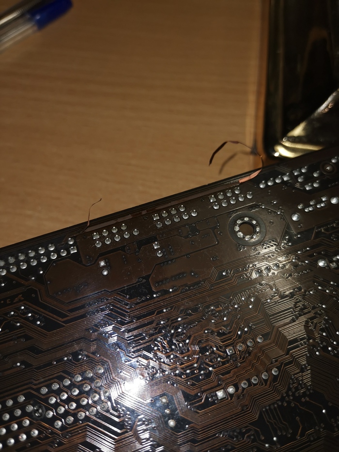 В общем опуская все мои мучения хоть что то высмотреть и причитания "какого хре.... Кхм... Зачем я полез в этот блок питания", отвёз комп отцу, сняли материнку и увидели это: