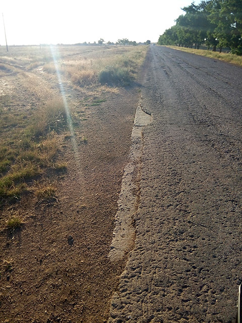 Под асфальтом уложен слой бетонных плит — характерный признак, что дорогу строили военные строители. Только у села Садовое на дороге был сильный дефект — в этом месте под дорогой дренажная труба.