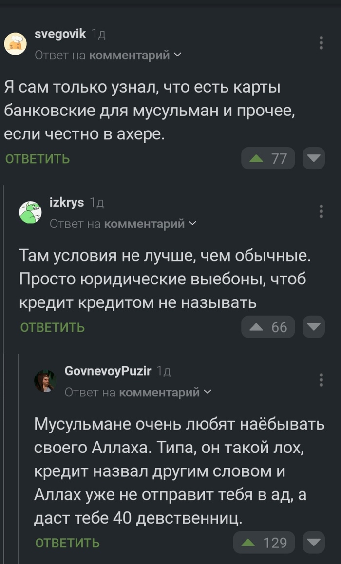 8221 METPO 8 месяцев назад Око за око1 #comment_341034855 Показать полностью 2 Ислам Религия Банк Кредит Ипотека Скриншот Комментарии на Пикабу Лицемерие Длиннопост Мат 290 36 7 Ещё 0