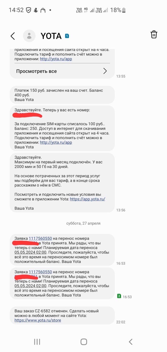 На следующий день, 27 апреля на мой номер МТС приходит сообщение (аж 2 раза), что все круто и скоро мы номер перенесём. Я успокаиваюсь, но лишь до вечера, потому что приходит сообщение об отмене переноса (снова).
