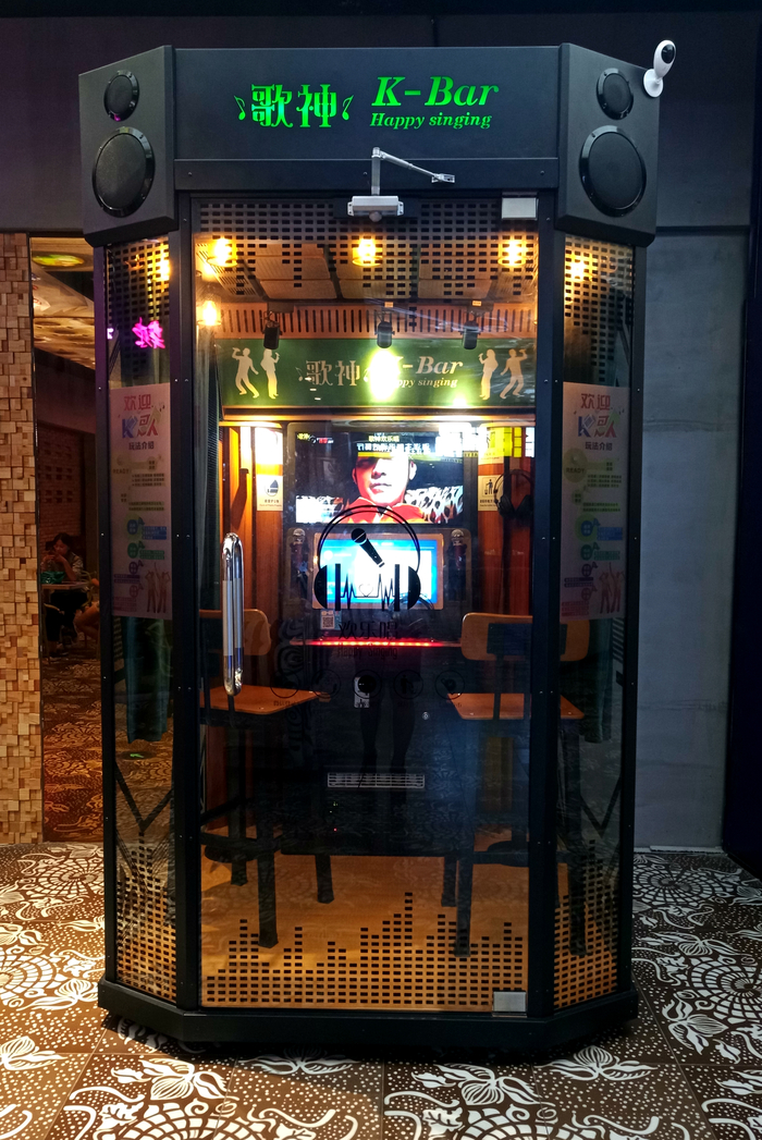 Китайцы очень любят петь. Далеко не у всех это хорошо получается, потому что иногда звуки, доносящиеся из КТВ, больше похожи на обряды экзорцизма, но это никого не останавливает. Но если КТВ – это просто более пафосный аналог наших караоке-баров, то меня впечатлили именно караоке-будочки, которые стоят в ТРЦ. Маленькая кабинка, рассчитанная на одно-двух певцов, поможет тебе в любой момент излить душу в песне.