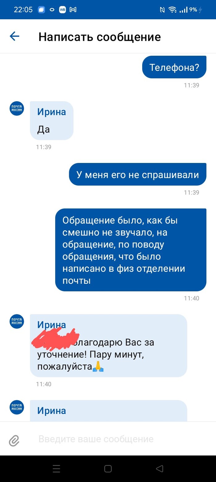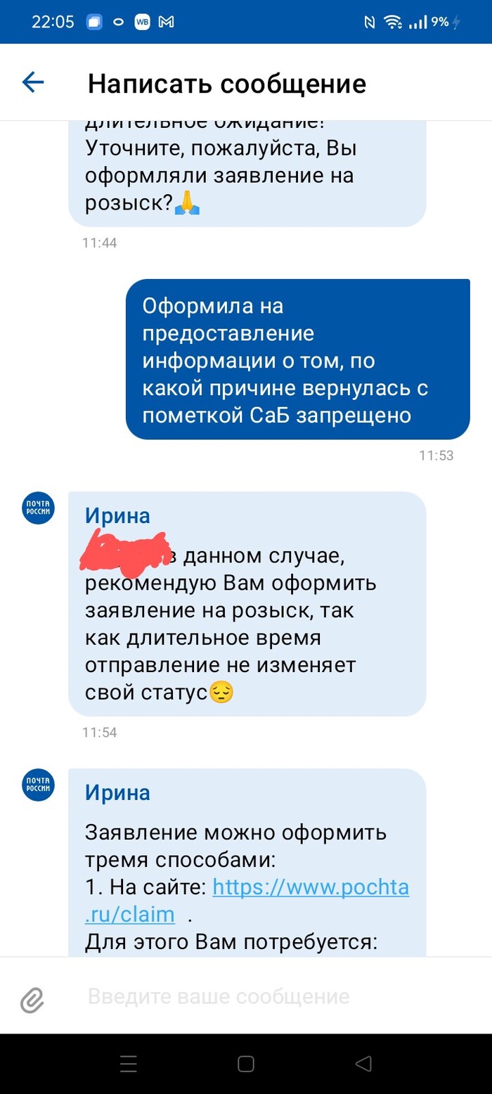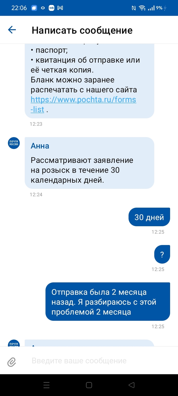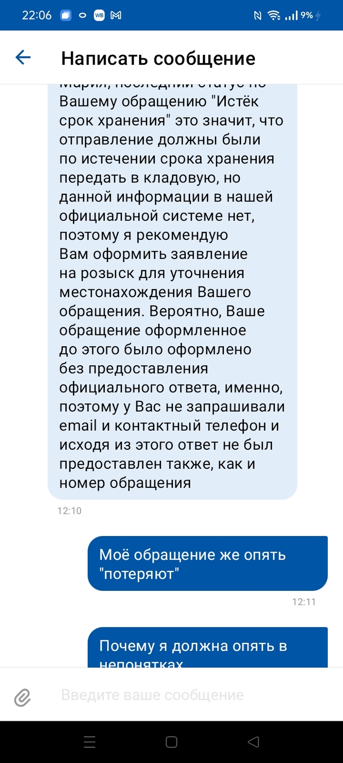В этот же день моя подруга начала штурмовать поддержку в приложении Почты России, где выясняется, что оказывается, должен быть номер обращения: