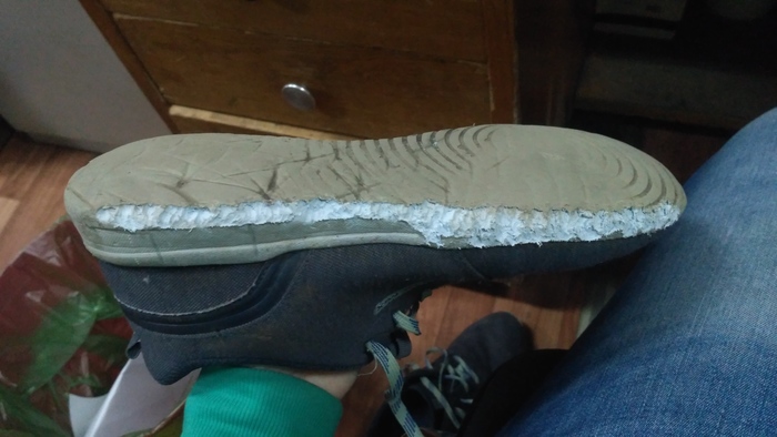Первой жертвой были мои кроссовки, которые на сменку у меня лежат. Крыса обожрала резиновую подошву. Причем один кроссовок был так себе, а второй капец какой вкусный. На фото вкусный.