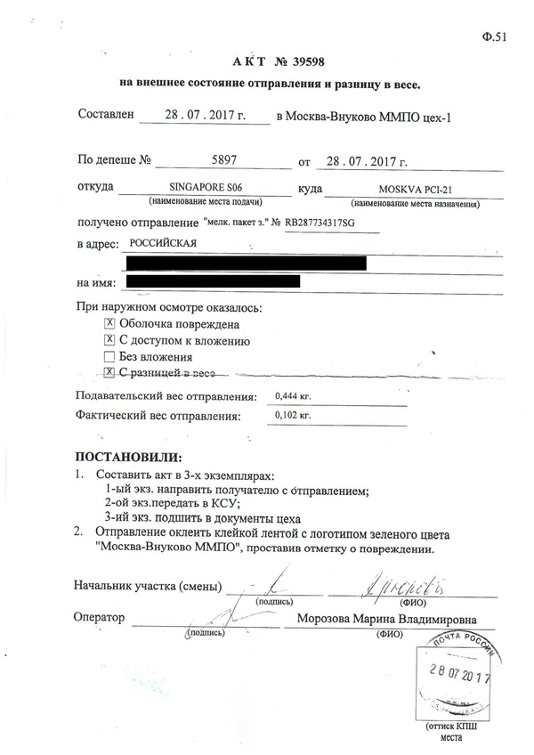 Предполагаю, что открывать спор на Aliexpress в любом случае, но вот нужно ли прикреплять к спору акта, данные мне почтой? (они же все равно на русском языке). Или достаточно прикрепить фото и видео наружно упаковки (саму упаковку я не стал разбирать, просто повертел перед камерой и отдал обратно сотрудницам почты).
