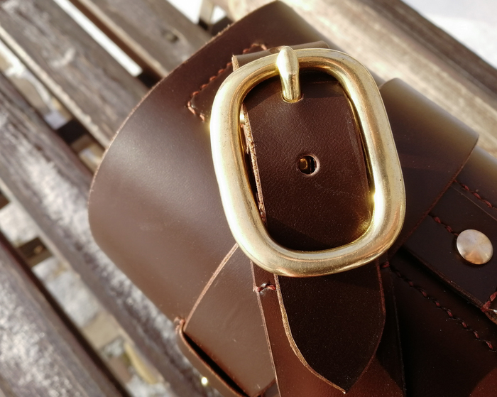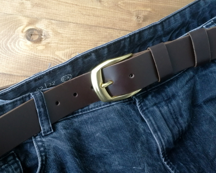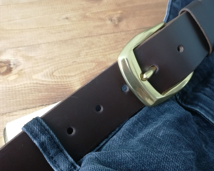 В моём случае получился ремень шириной 40мм с латунной фурнитурой.
