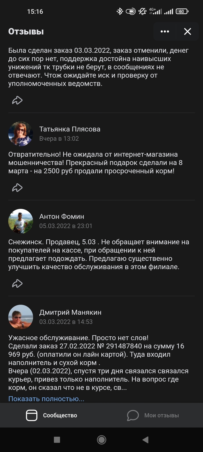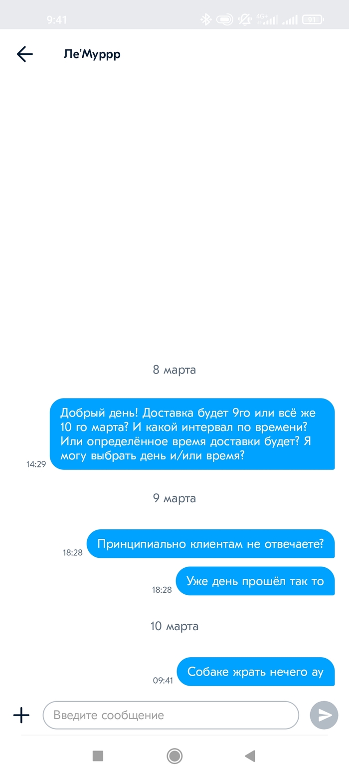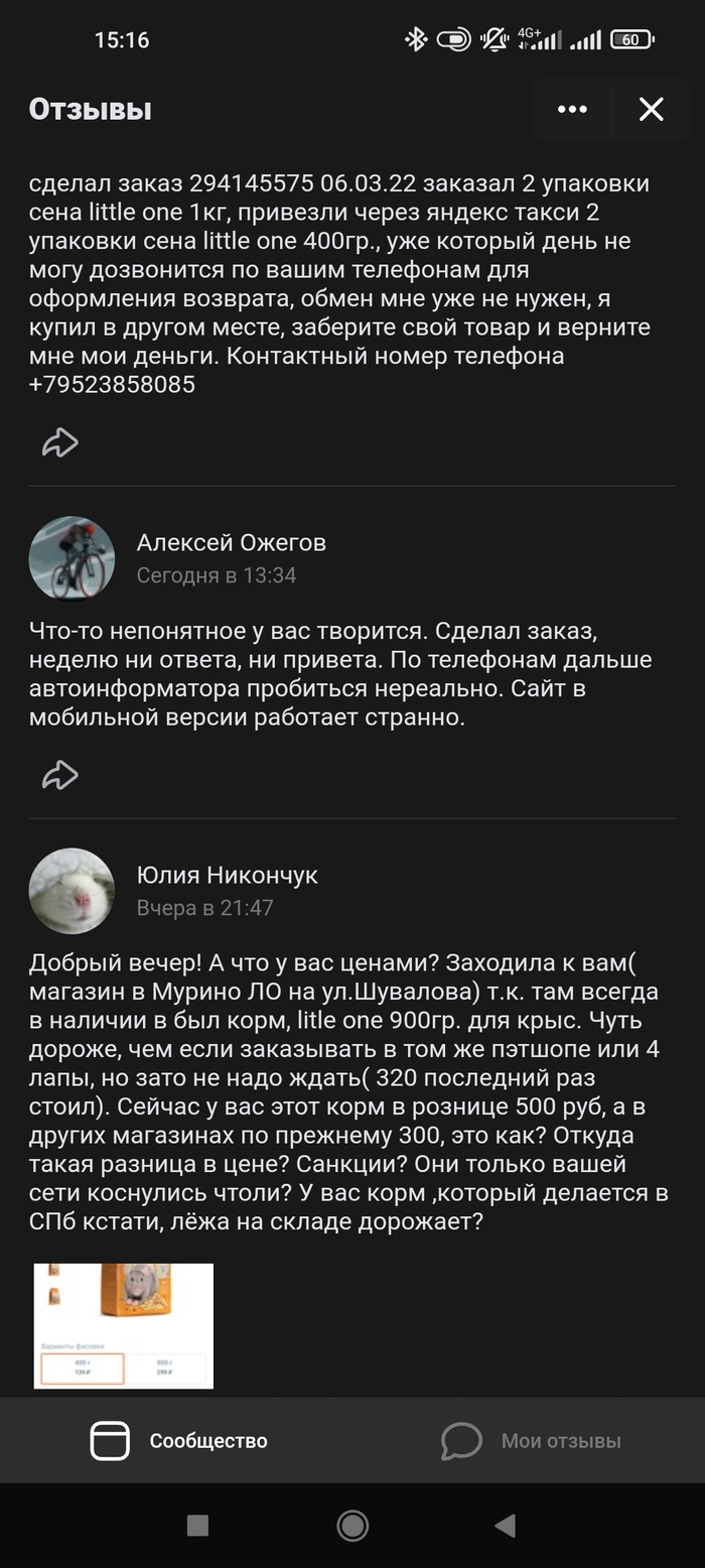 В связи с последними событиями решили заказать корм онлайн. Нашли на озоне в наличии и за нормальную цену. Однако доставка силами продавца и со склада продавца. Содрали 100% предоплату, иначе товары не отгружают. Доставку обещали на 9-10 марта. Странно, может нам перезвонит курьер или менеджер и уточнит время доставки, как делает это нормальный интернет-магазин? Щазззз.